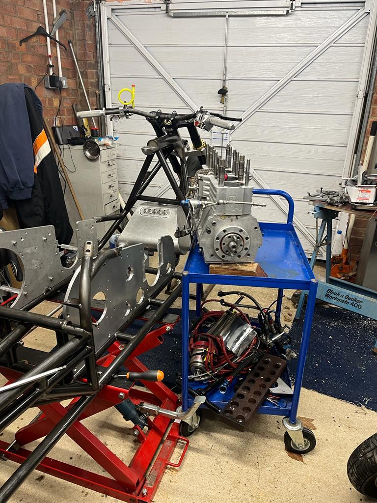 We have the engine build up, dismantled and rebuilt again, and in the bike. The gearbox is completed and also in. All the plumbing and wiring (not a lot!) and data logger still to fit.